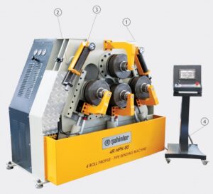 Благодаря четырехроликовой геометрии на данной машине можно использовать как симметричную конфигурацию гибки (поджатие двумя боковыми роликами), так и асимметричную конфигурацию гибки (поджатие боковым роликом с одной стороны) в зависимости из профиля который будет обрабатываться на данной машине. На машинах серии 4R HPK есть возможность работы как на трехроликовой профилегибочной машине, используя нижний центральный ролик только в качестве поддержки, благодаря чему получается более качественный гиб полых профилей (уголков, труб с тонкими стенками, алюминиевых профилей и т. д.).